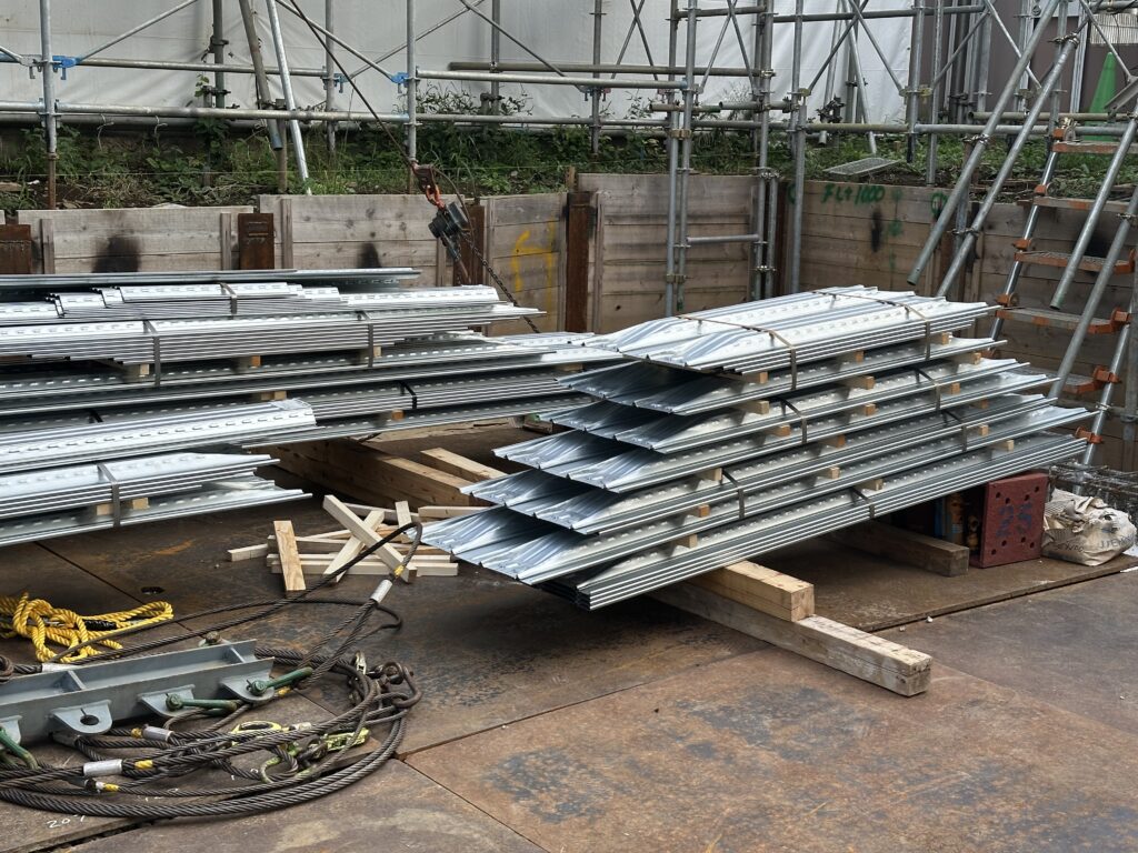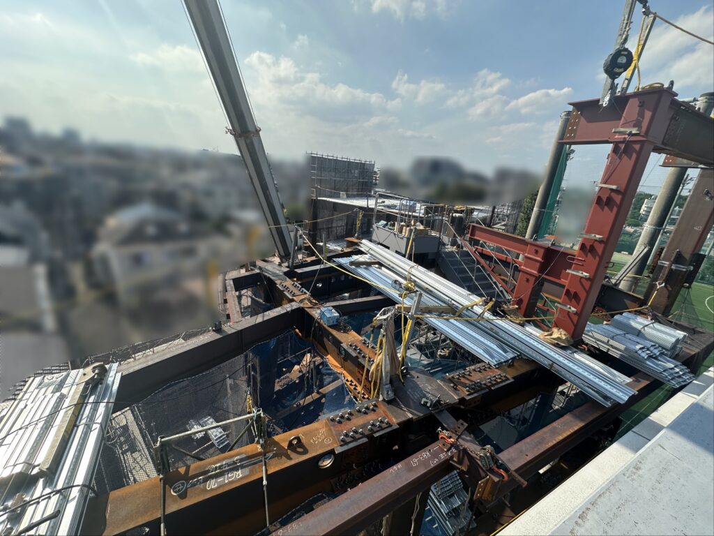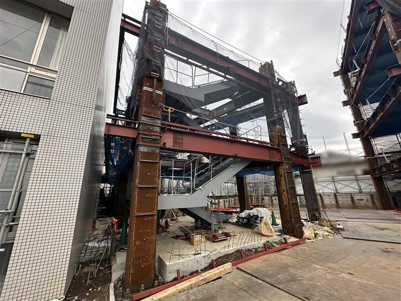 現在は、廊下建築区画の組み上げ作業に入っており、この区画では鉄柱・鉄骨・鉄板に加えて、階段の組み上げも行われます。