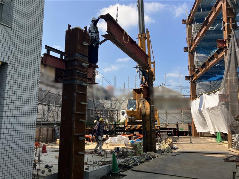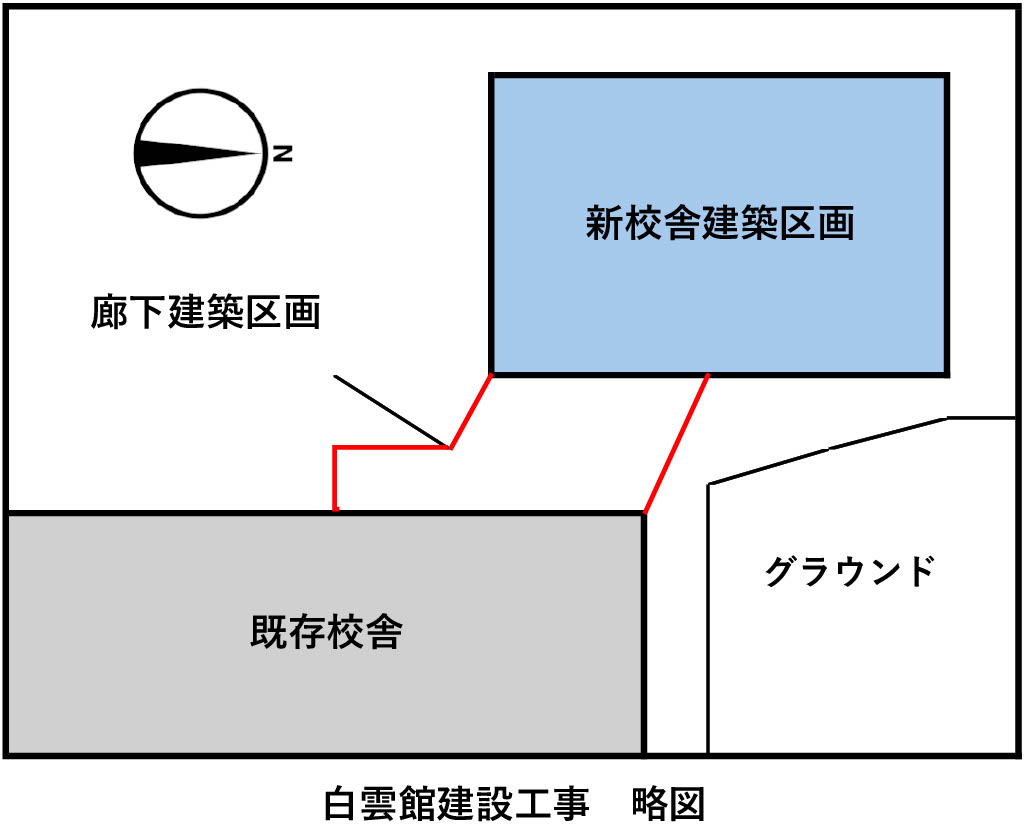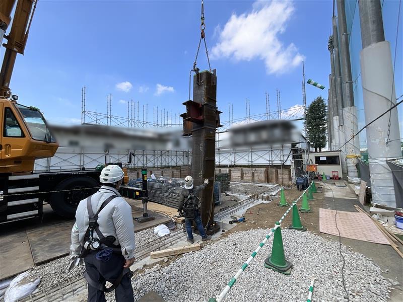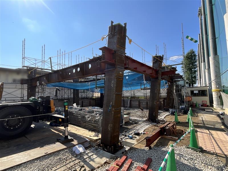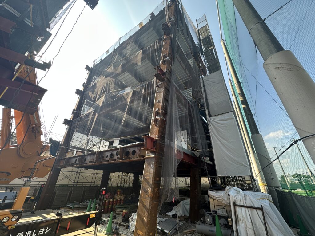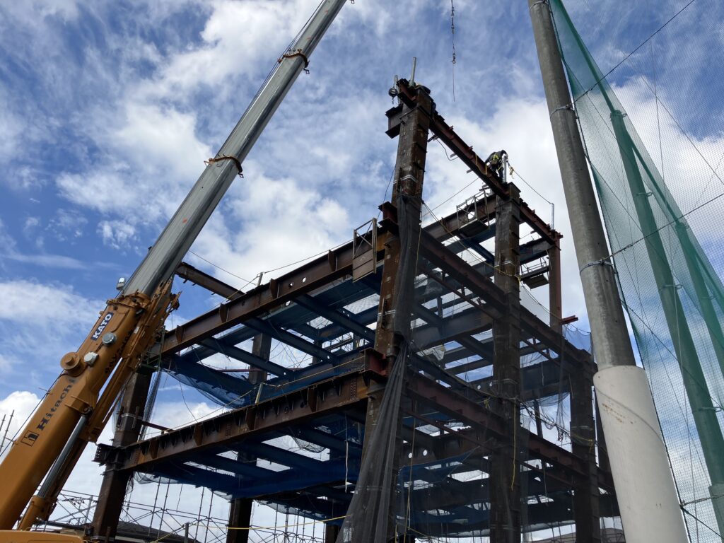 前回の「建設レポート⑦」でご報告させていただいた、既存校舎外壁解体工事が完了し、ついに地上部分の建築作業が始まりました。