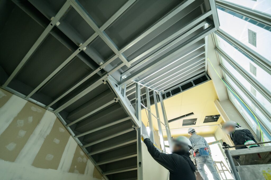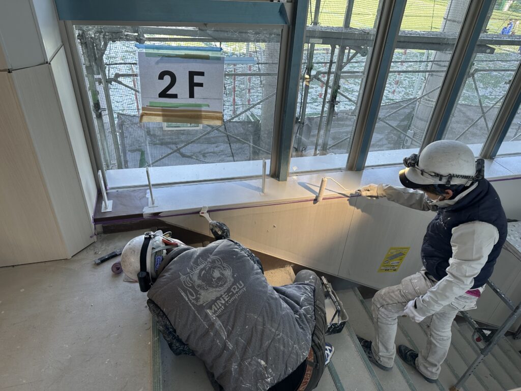 また、階段では、手すり壁の設置と塗装作業が行われました。