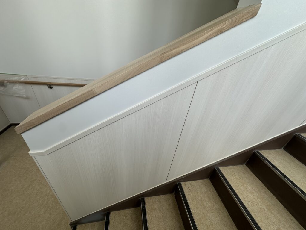 続いて、扉や手すり、棚などの造作建具の設置が進められました。