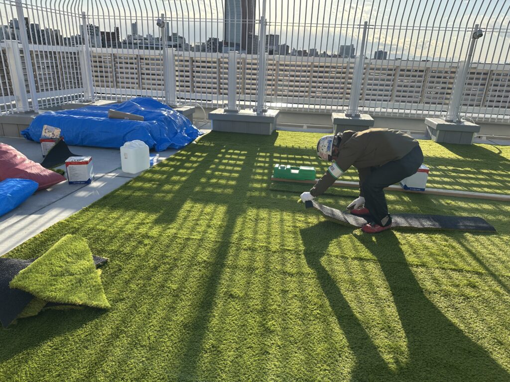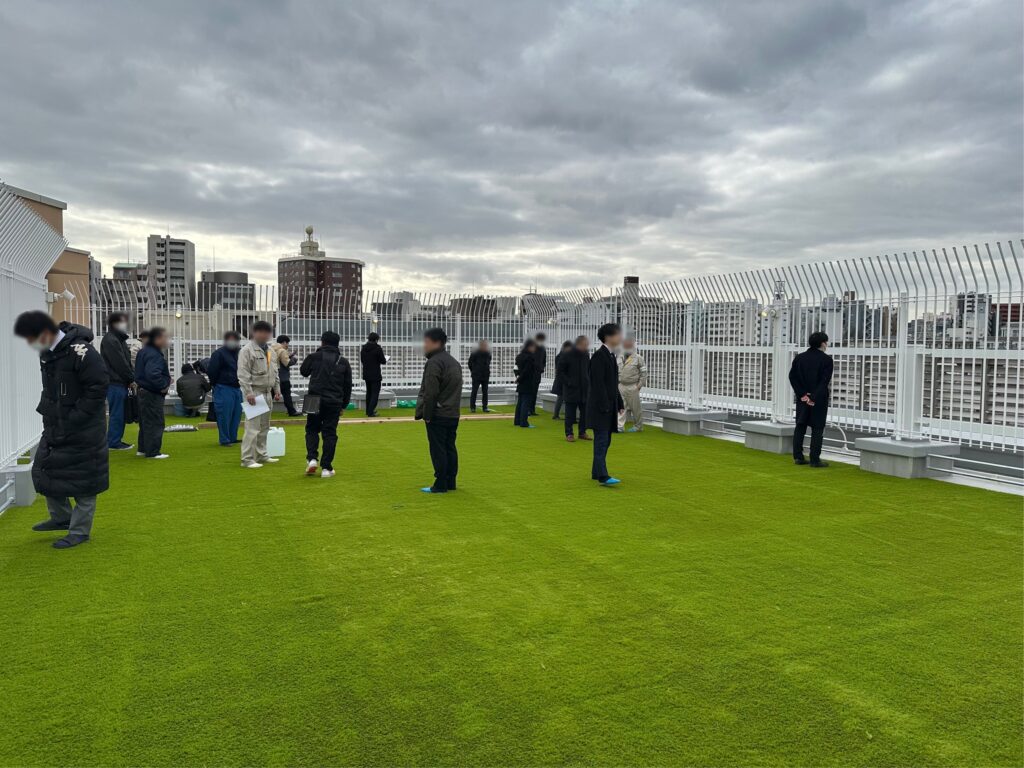 最後に屋上の人工芝が敷設されたことで、「白雲館」のすべての建築工程が完了いたしました。