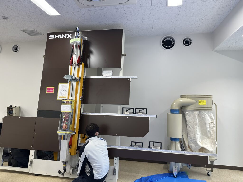 1階メイカールーム(技術室)では、「パネルソー」と呼ばれる板材を切断するための巨大な木工機械が設置されました。