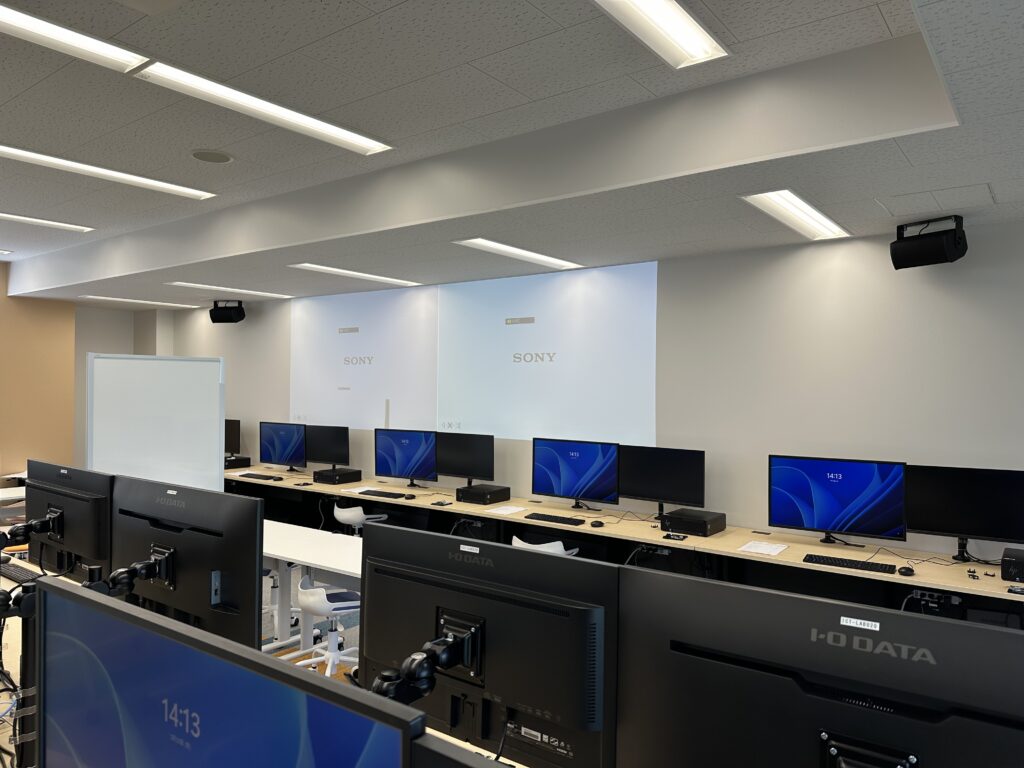 各教室の機器什器設置作業が完了し、ICTラボでは3月27日(金)に、施工業者立会いのもとで検収が行われました。