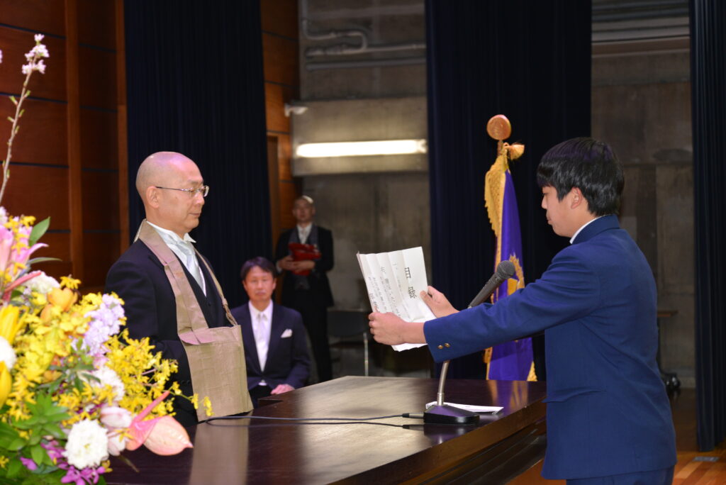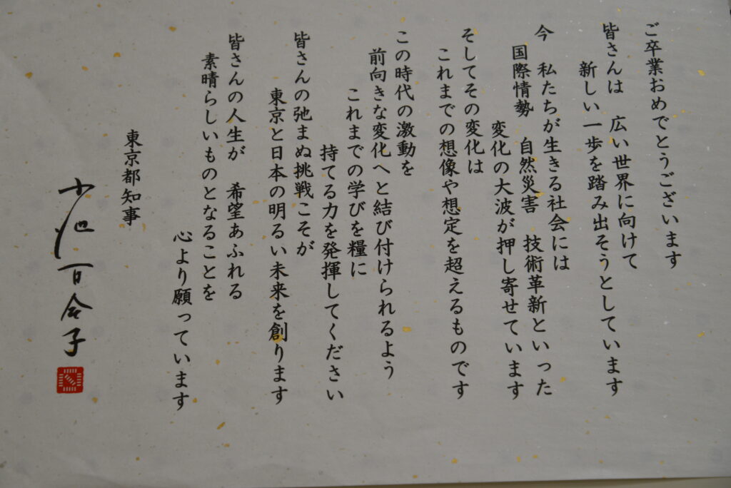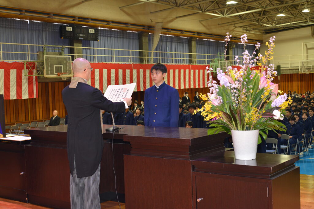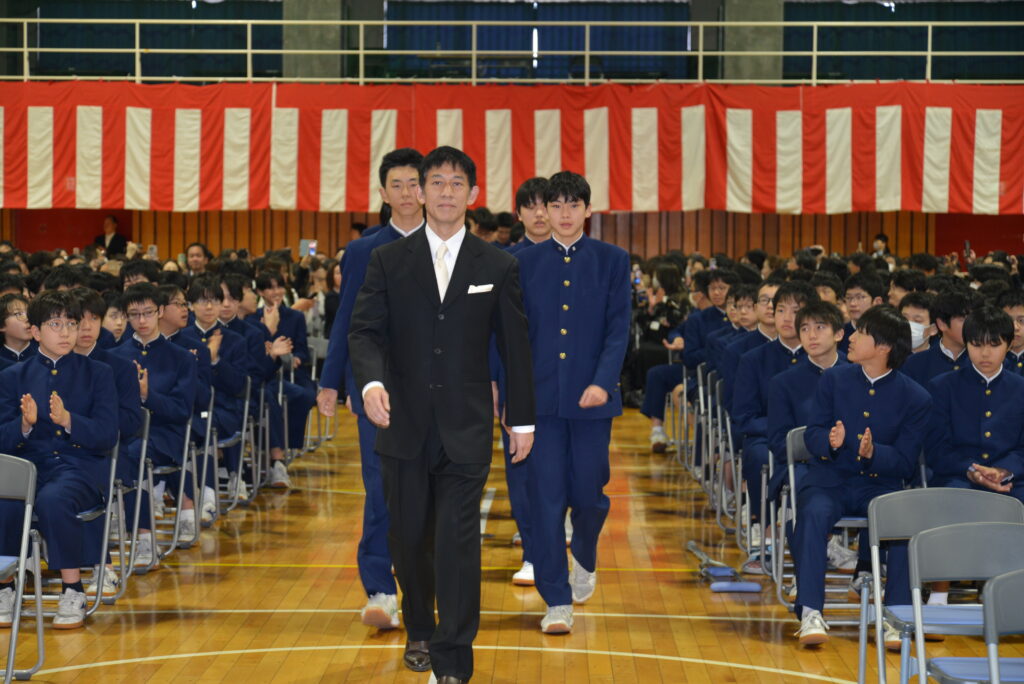 この三年間で大きく成長した皆さんの高校生活、そしてその先に広がる未来が、希望に満ちあふれ、光り輝くものとなることを心より願うとともに、皆さん一人ひとりの前途に幸多からんことを、心よりお祈り申し上げます。